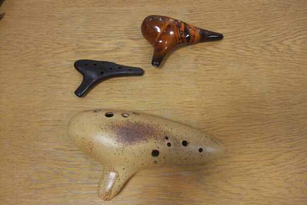 小さいオカリナからは高い音、大きなオカリナからは低い音が出るとのことです。オカリナは陶器で作られていますが、プラスチック製の物もあるそうです。